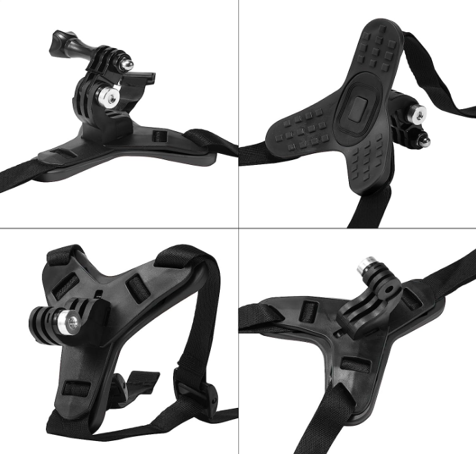 • Diseño de correa: el soporte se puede fijar en la barbilla del casco. Aprieta o suelta la correa con la hebilla. Lo suficientemente fuerte como para sostener tu cámara de forma estable